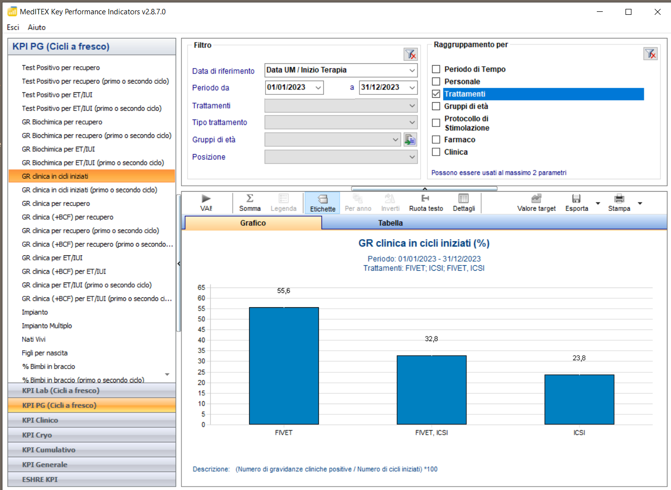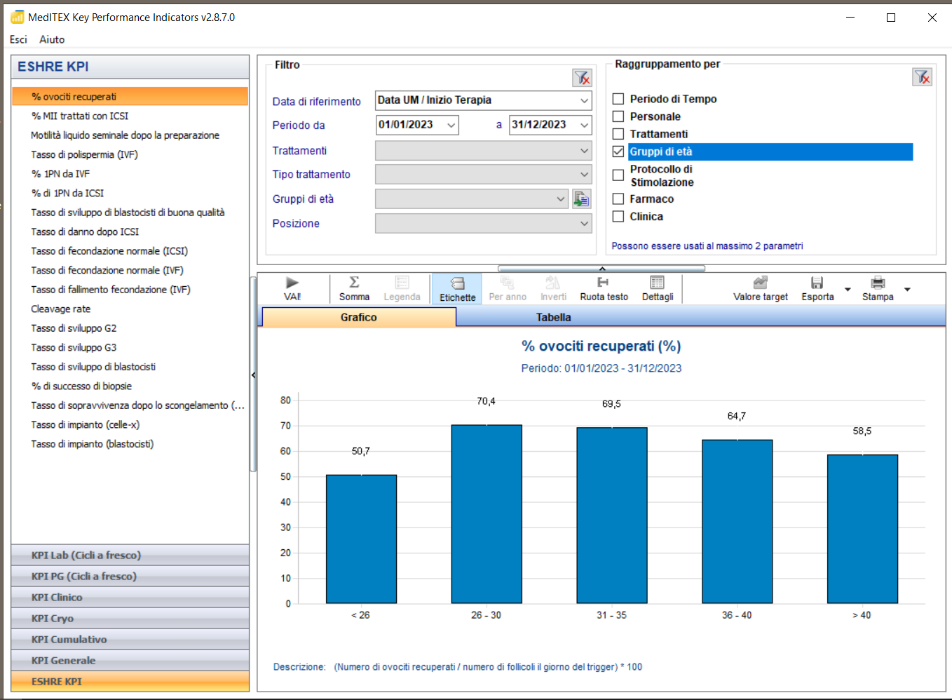 Tenere sotto controllo queste fasi vuol dire ottenere risultati attendibili e utili. Nel dettaglio, in un software destinato alla gestione di un centro di procreazione medicalmente assistita risulta, quindi, fondamentale la presenza di uno strumento di analisi statistica dei dati efficace ed efficiente. Ovvero in grado di fornire quelle analisi campionarie che consentano al medico, al biologo e all’amministratore di prendere decisioni.